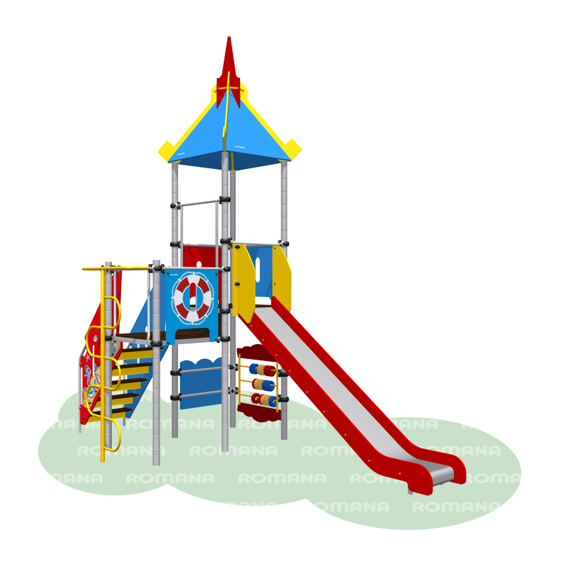 Детская площадка «Морской» - это маленький комплекс с башенкой и с иллюминаторами и якорьками. С горкой, лесенкой-змеевиком, турником. Хорошо развивает координацию и ловкость у детей, укрепляет мышцы. Подходит для любых детских игровых площадок.