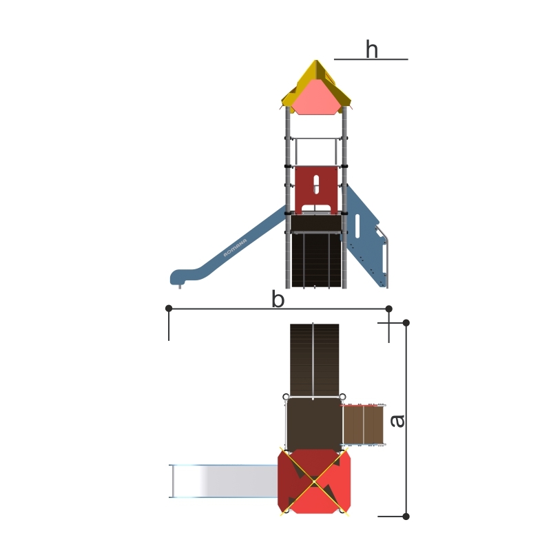 Детская площадка «Romana 101.05.09» - маленький игровой комплекс с домиком, горкой и лазом. Подходит даже для самых маленьких площадок.Изделие устанавливается на открытых уличных участках, находящихся под контролем ответственного лица – эксплуатанта. Установка Изделия должна проводится на ровной площадке, свободной от насаждений. В зоне приземления должно быть ударопоглощающее покрытие (песок, древесные опилки) минимальной толщиной 300 мм