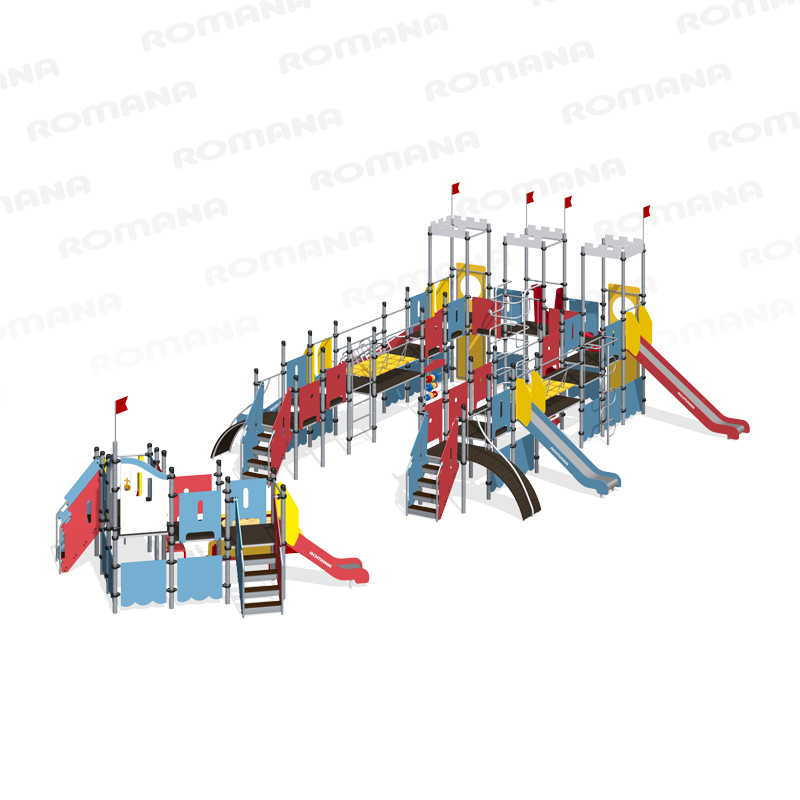 Детская площадка «Корабль Romana 101.51.00» - это игровой комплекс с горкой и переходом для детских игровых площадок.Изделие устанавливается на открытых уличных участках, находящихся под контролем ответственного лица – эксплуатанта. Установка Изделия должна проводится на ровной площадке, свободной от насаждений. В зоне приземления должно быть ударопоглощающее покрытие (песок, древесные опилки) минимальной толщиной 300 мм