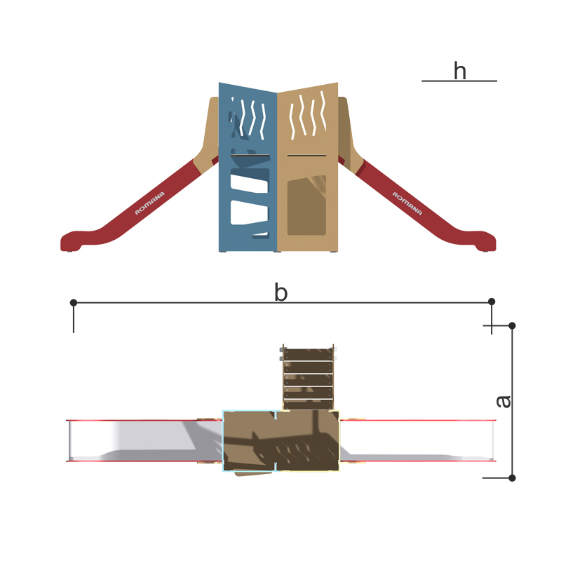 Игровой модуль для тематических игр и физического развития предназначен для детей в возрасте от 8 до 12 лет. Изделие должно представлять собой устойчивую конструкцию, обеспечивающую безопасные условия для занятий на открытом воздухе. Конструкция должна обладать высокой ударопрочностью и виброустойчивостью.В сборе представляет собой конструкцию в виде двух прямоугольных комплексов-башен по центру (сдвоенная башня), к которым с двух противоположных сторон прикреплены горки 1250 мм и с одной стороны прикреплена лестница.Изделие устанавливается на открытых уличных участках, находящихся под контролем ответственного лица – эксплуатанта. Установка Изделия должна проводится на ровной площадке, свободной от насаждений. В зоне приземления должно быть ударопоглощающее покрытие (песок, древесные опилки) минимальной толщиной 300 мм.