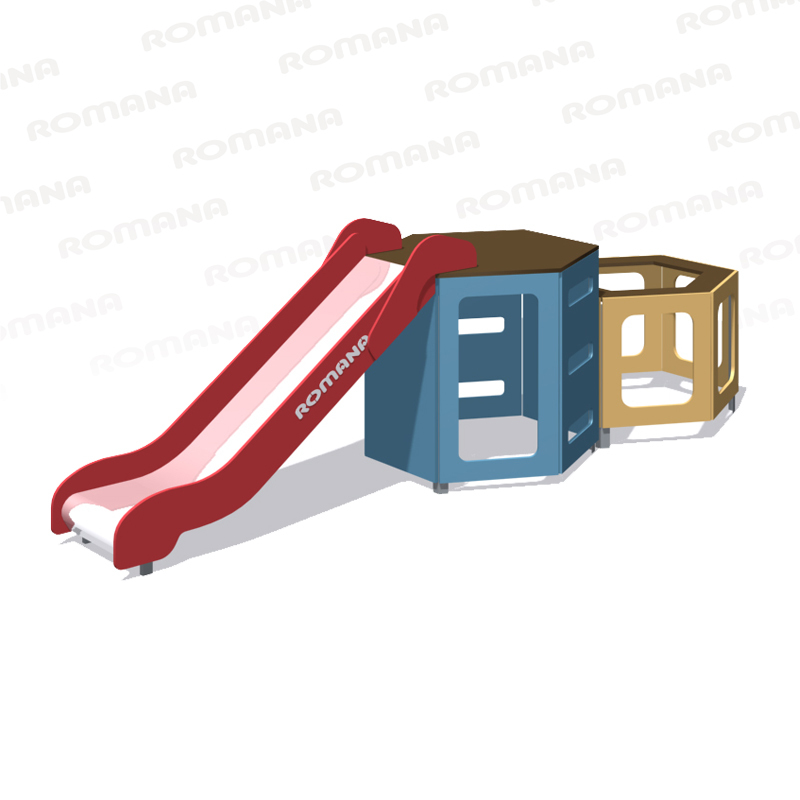 Игровой модуль для тематических игр и физического развития предназначен для детей в возрасте от 4 до 12 лет. Изделие должно представлять собой устойчивую конструкцию, обеспечивающую безопасные условия для занятий на открытом воздухе. Конструкция должна обладать высокой ударопрочностью и виброустойчивостью.В сборе представляет собой конструкцию в виде шестиугольного каркаса из панелей с отверстиями, скрепленную уголками и грунтозацепами, с установленной фанерной крышей и присоединенной горкой высотой ската 950 мм.Изделие устанавливается на открытых уличных участках, находящихся под контролем ответственного лица – эксплуатанта. Установка Изделия должна проводится на ровной площадке, свободной от насаждений. В зоне приземления должно быть ударопоглощающее покрытие (песок, древесные опилки) минимальной толщиной 300 мм.