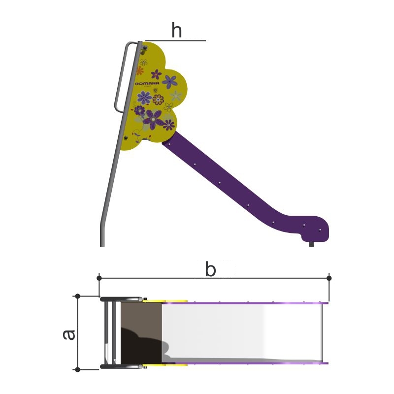 Горка «Цветок» - классическая детская горка желто-красного-синего цвета. Сверху ската высокие бортики в виде половины цветка.
