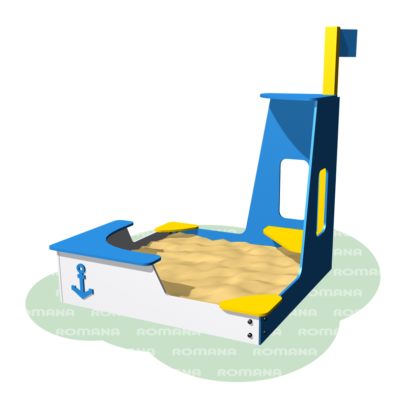 Песочница «Парусник» яркая, разноцветная со скамеечкой и мини-беседкой в виде рубки парусника, с флажком. Игры с песком развивают мелкую моторику, фантазию и усидчивость. Может устанавливаться на любых площадках. Является не только практичным игровым оборудованием, но и эстетически красивым украшением площадок.