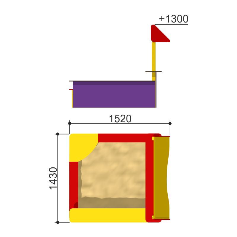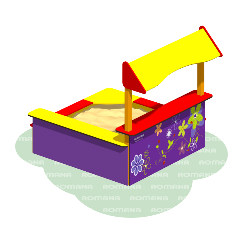 Песочница с козырьком яркая, разноцветная со скамеечками и аппликациями в виде цветов и бабочек на зеленом фоне. Над одной скамейкой козырек, который дает возможность спрятаться как от жаркого солнца, так и от мелкого дождика. Игры с песком развивают мелкую моторику, фантазию и усидчивость. Может устанавливаться на любых площадках. Является не только практичным игровым оборудованием, но и эстетически красивым украшением площадок.