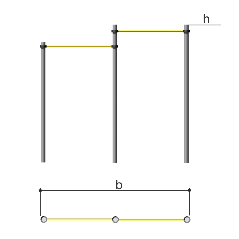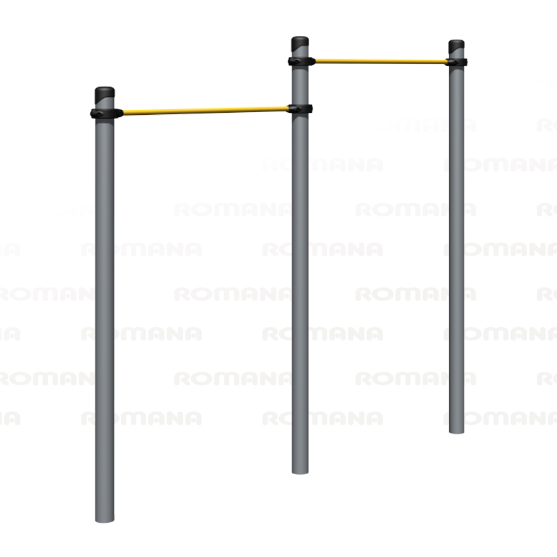 Спортивное оборудование - турник сдвоенный входит в комплекс «Воркаут», наряду с другими спортивными элементами устанавливается на территориях игровых зон, зон отдыха, спортивных площадках для пользователей от 14 лет. Предназначено для доступных занятий физической культурой на свежем воздухе. Круглогодичное эксплуатирование. Изделие устанавливается на открытых уличных участках, находящихся под контролем ответственного лица – эксплуатанта. Установка должна проводится на ровной площадке, свободной от насаждений. Над зоной безопасности, должно быть свободное пространство, т.е над ней не должно быть ни веток, ни элементов других конструкций.