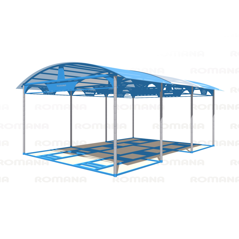 Навес предназначен для установки внутри него тренажеров на рамной конструкции с целью создания мобильных спортивных зон для занятия спортом независимо от времени года, так как крыша препятствует попаданию атмосферных осадков внутрь тренажерной площадки. Навес может эксплуатироваться круглогодично.Изделие представляет собой сборно-разборную конструкцию. Сборка производится при помощи резьбовых соединений. Конструктивно навес выполнен в виде рамы -основания, стоек и крыши.
