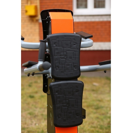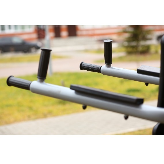 Тренажёр предназначен для выполнения гимнастических и силовых упражнений на брусьях по укреплению мышц груди, бицепса и трицепса. Тренажер двухсторонний, разноуровневый, возможно одновременное выполнение упражнений двумя лицами.